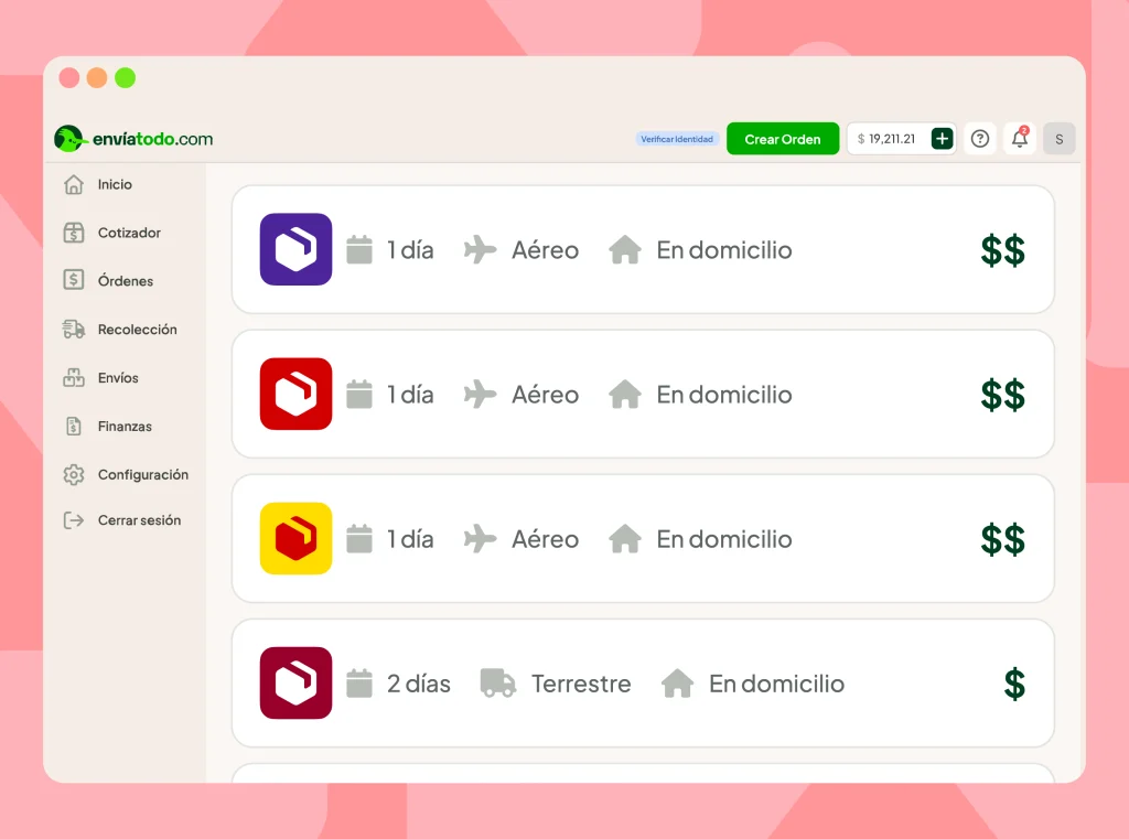 - Cotizador inteligente con las mejores paqueterías.
